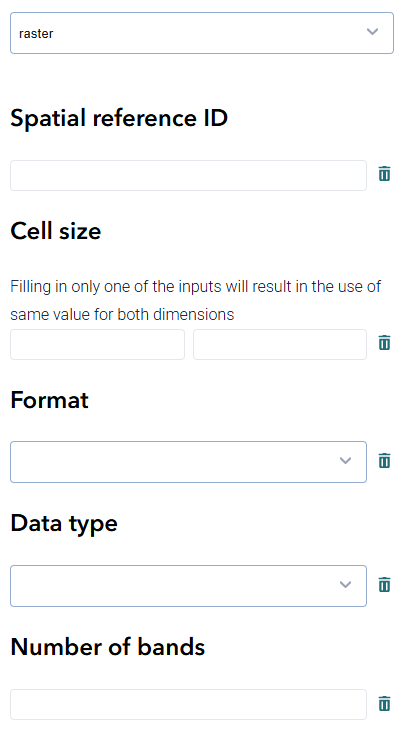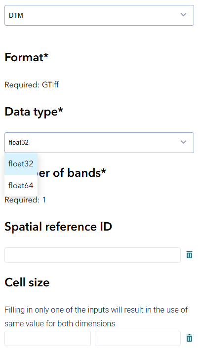- This is the expected data type for the uploaded raster data. The data type is the type of data stored in the raster, such as integer, float, etc.