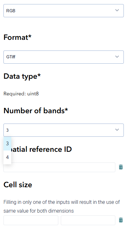 - If specified, all the rasters uploaded to the data collection must have the same format.