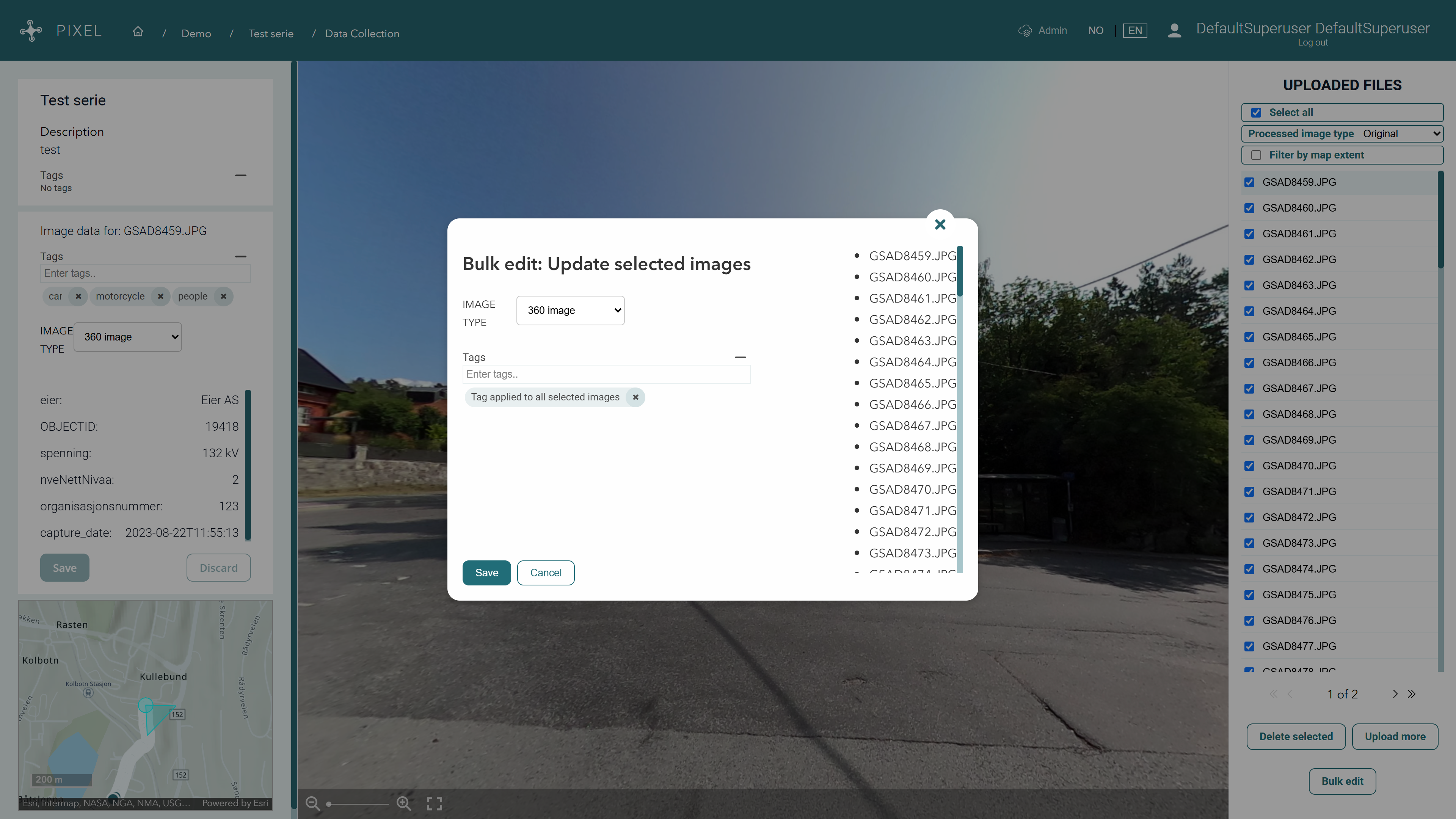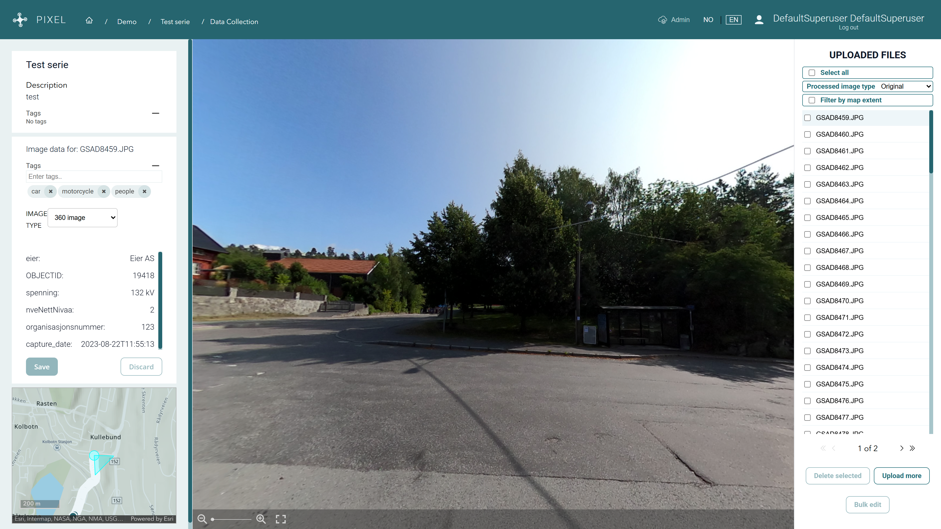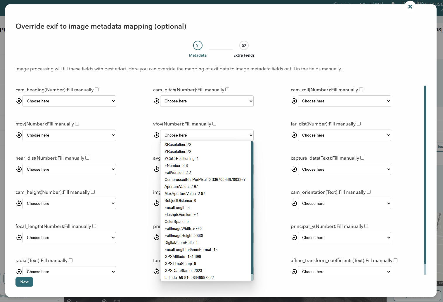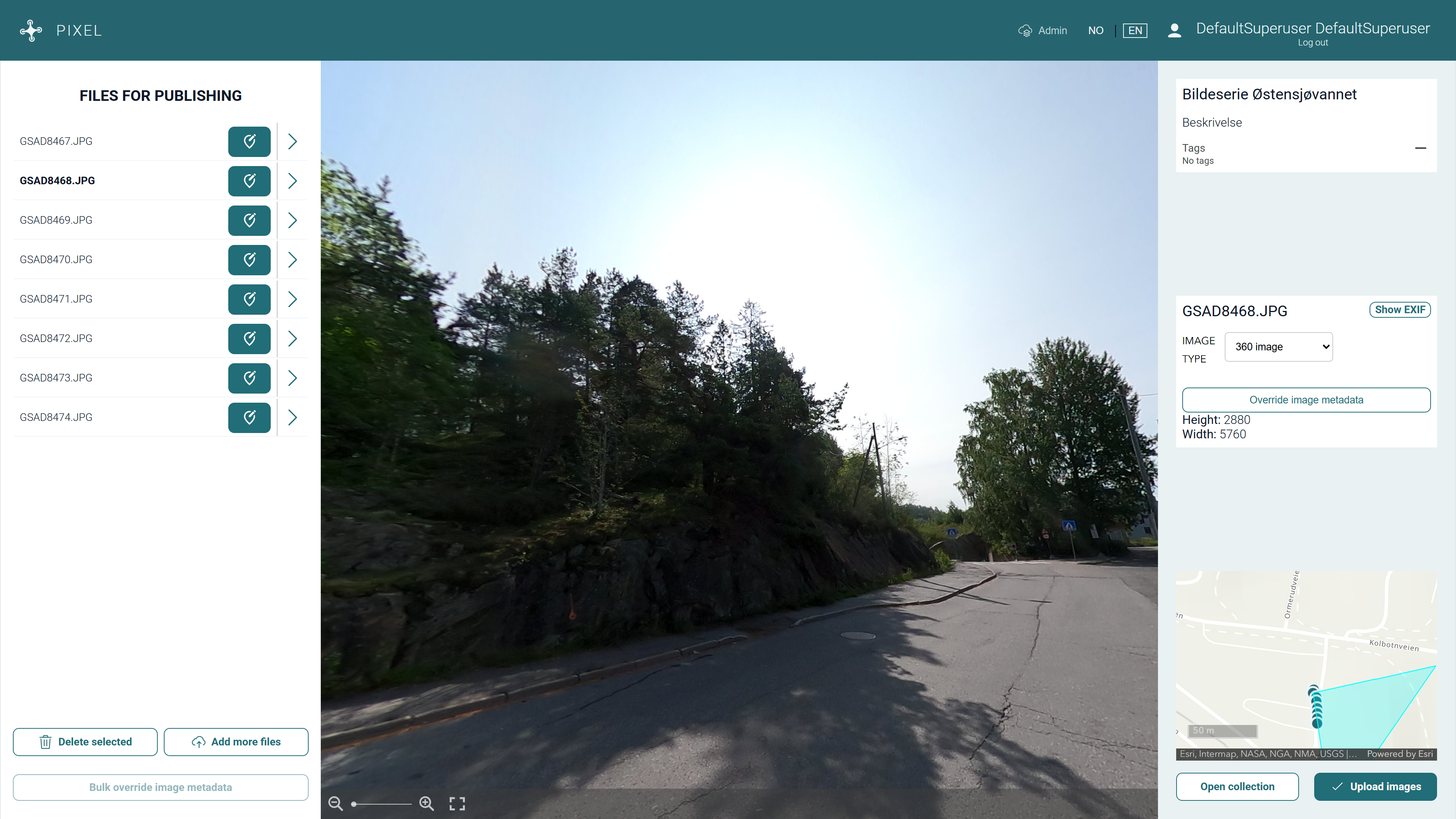 Geodata Pixel uses metadata from the images that are uploaded. Therefore, it is important that the images hold this metadata.