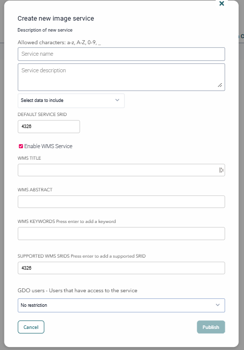 - Enable WMS Service: Check this box to enable WMS capabilities for the image service.